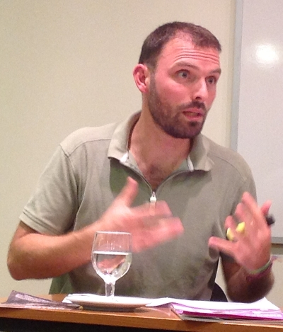 Lucía comenzó presentando la perspectiva que le da su marco personal como teóloga laica de convicción ecuménica en una Iglesia nada favorable a esa conjunción de características, desde un cristianismo abierto y una militancia intelectual y práctica. Tom no tardó en presentarse como ateo, pero conocedor de las tensiones que se viven en la Iglesia y con frecuente contactos con creyentes en múltiples ámbitos de actuación: el movimiento contra la deuda, la Comisión Intereclesial de Justicia y Paz de Colombia, el apoyo a comunidades indígenas amenazadas por la explotación de recursos, los grupos comprometidos con el comercio justo y el consumo responsable…